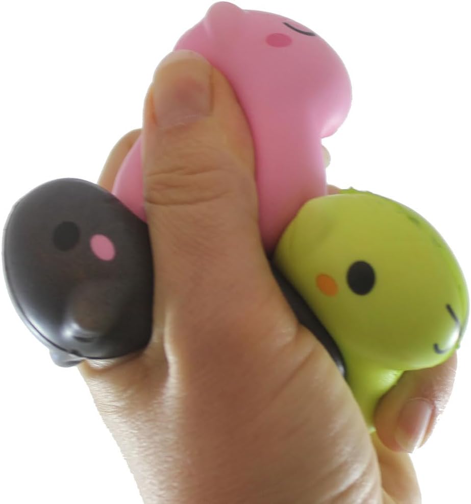 BULK - 24 RANDOM COLOR CAPYBARA SQUISHIES (2 DOZEN) - Capybaras and slow rise squishies! A perfect combination. This adorable toy is soft foam shaped like the large land rodent, the capybara. Each capybara is 2.25" tall x 2.75" long, and 1.25" wide. The rodents come in 8 colors and have 2 adorable face styles. Slow rise Squishies - These soft and spongy toys designed to be squeezed and squished in your hands providing stress relief and sensory stimulation. Slow rise squishy fidgets are made from ultra soft spongy foam which slowly rises back to its original shape after being squished. These unique toys help you relax by giving your mind something else to focus on while you decompress. Slow rising squishy toys also make a great tool when doing mindful breathing. Squeeze while inhaling, and slowely exhale as the form grows back into its original shape. Kids and adults love the soft playful toy at home, school, work, or even in the car. Take it out when you need to clear your mind and focus.