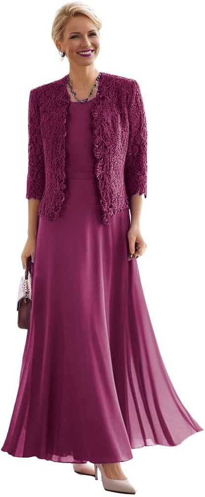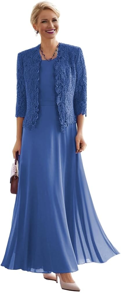 Design : Long Chiffon Mother of The Bride DressesFabric: ChiffonLength: LongSilhouette: A LineNeckline: Crew NecklineSleeve Style: 3/4 SleevesClosure: Drawstring corset (zipper back can be customized)2025 Long Chiffon 3/4 Sleeves Formal Evening Dress with Jacket Laces 2 Piece Grandma Dresses for WeddingLong Chiffon 3/4 Sleeves Groom of The Grandma Dresses for Wedding 2 Piece Mother of The Bride Dress with Jacket2 Piece Groom of The Grandma Dresses for Wedding 3/4 Sleeves Chiffon Grandmother of Bride Dress with Jacket